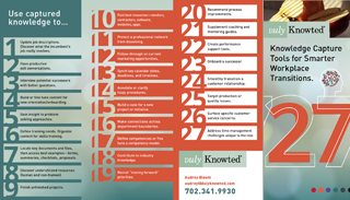 While capture is a good idea at any time, we especially like transitions for knowledge transfer. Transition windows add focus and urgency as people move on to new roles or move out to resign or retire.